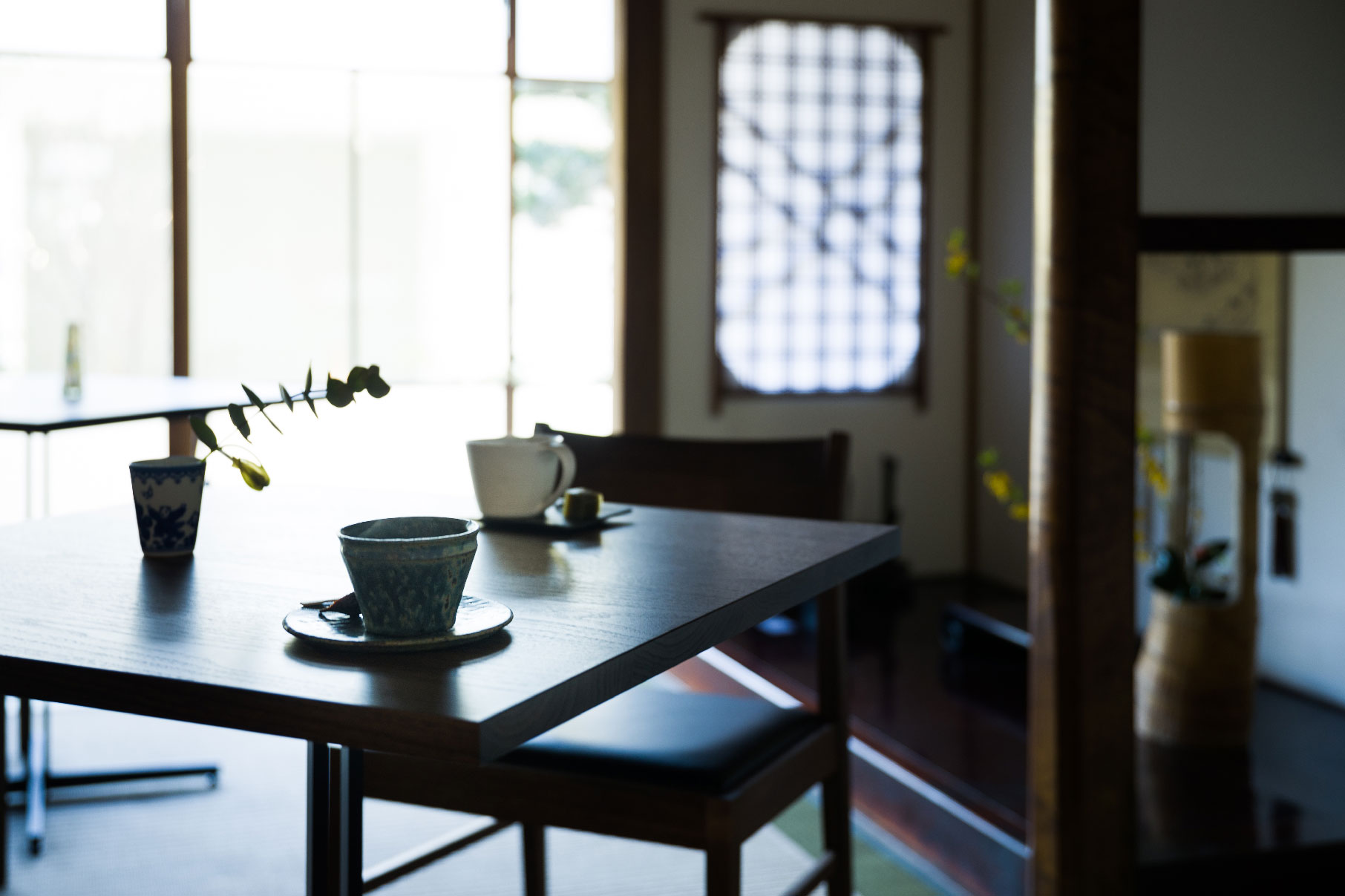 座敷を利用した3席だけのカフェ。床の間やショップの方では商品のお取り扱いをさせていただくおことも可能です。